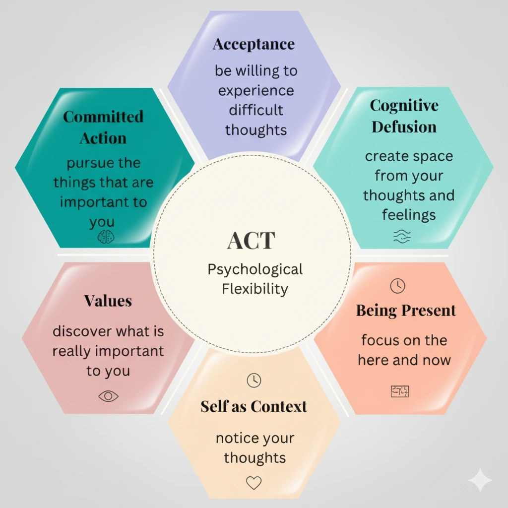 ACT is a type of psychotherapy that emphasizes acceptance of difficult emotions, thoughts, and experiences in the present moment. Developed by Steven Hayes and others, ACT aims to increase psychological flexibility, allowing individuals to live more meaningful and fulfilling lives.
